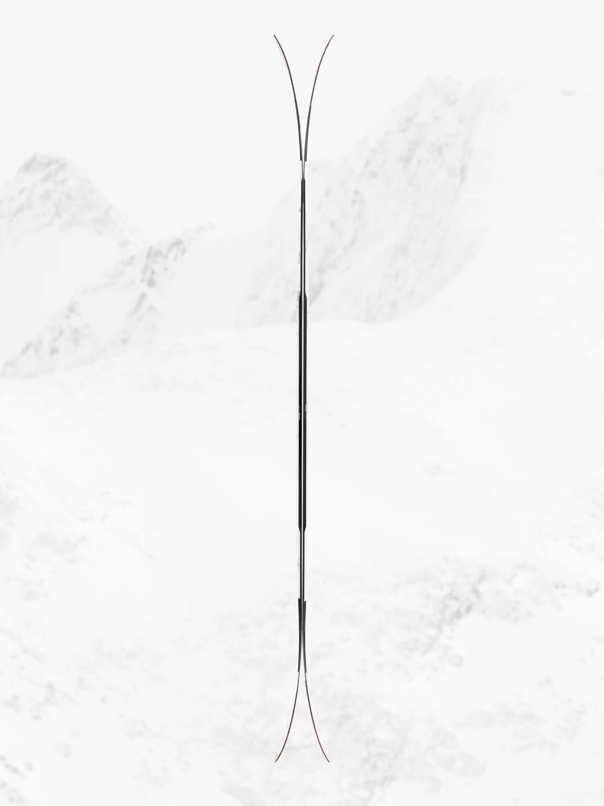 ■ 特徴:ロッカー形状の先端と尾部、そして足元でのポジティブキャンバーが組み合わさり、深い雪や変化に富んだ雪質でも浮力を保ちながら直進性を発揮。同時に硬い雪質では確かなエッジグリップを維持します。